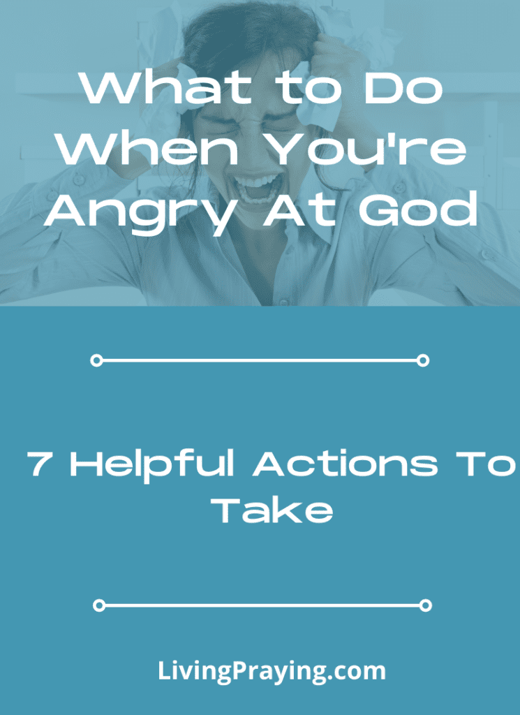 If you find yourself with anger towards God, accept and confess any wrong actions or attitudes that you’re having. He knows anyway.